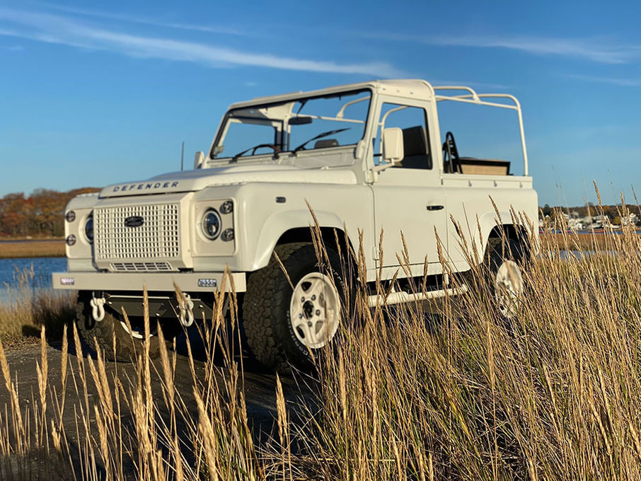 Finished in radiant Alpine White, the Nantucket Nomad 90 Defender exudes timeless Land Rover heritage with a modern flair. Its tan soft top and matching frame complement the warm, custom tan interior, complete with a hand-stitched dash, door panels, and a wood steering wheel. A fully serviced, powerful engine, heritage grille, and LED lighting ensure this convertible is as capable as it is stylish—designed for both rugged adventures and coastal escapes.